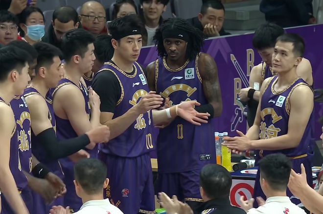 上一轮比赛,徐杰脚踝受伤,本场比赛面对北控队因伤缺阵,只是身穿羽绒服来到场边观战,首发位置由胡明轩顶替。