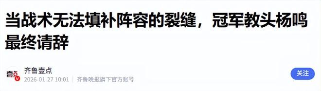 官媒锐评点得很准,真正让杨鸣撑不下去的,是球队背后那两个更棘手的问题。