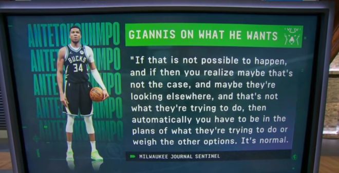 名记Shams在今天的节目上带来了字母哥交易的最新动态——