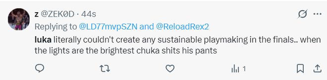 湖蜜:东契奇在关键比赛根本无法展现出任何持久的组织进攻才能,当聚光灯都打在他身上时,他竟然尿裤子不敢投。