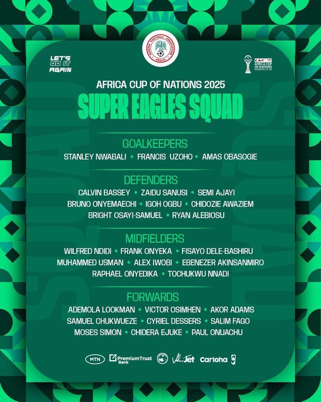 尼日利亚国家队2025年非洲杯大名单: