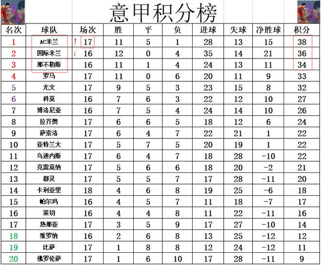积分榜方面,AC米兰客场击败卡利亚里后,先赛的他们超过国米2分暂时登顶,同时AC米兰比卫冕冠军那不勒斯多4分,本轮前2的位置不会被动摇。输球的卡利亚里还是排在中下游,暂时还没有很大的保级压力。