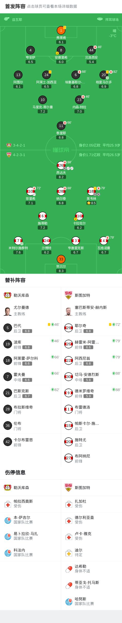 勒沃库森1-4斯图加特,莱韦林双响,昂达夫两传一射-24直播网